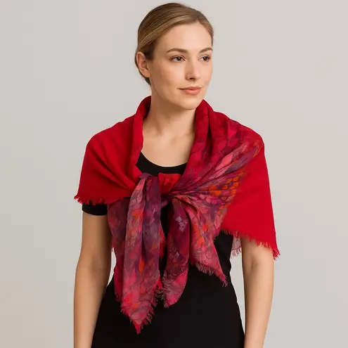Beautiful Johnston & Murphy floral abstract scarf featuring shades of red, pink, purple, and orange. Soft, lightweight, and finished with fringed edges. Details: • 100% Polyester • 48” × 52” • Retail $70 • NWOT — snag as shown Perfect pop of color for day or night looks. (Disclaimer: AI-enhanced photo presentation.) Johnston & Murphy scarf, floral scarf, red wrap, women’s shawl, abstract print scarf, colorful scarf, fringed wrap, boho chic accessory, fall winter scarf, holiday gift idea, travel wrap, lightweight polyester scarf, multicolor shawl, statement scarf, layering accessory Snag as shown.