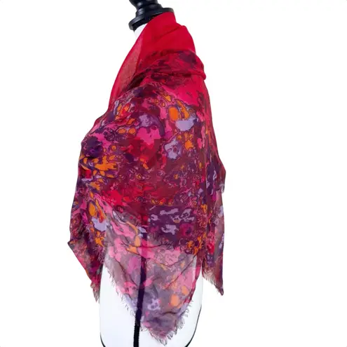 Beautiful Johnston & Murphy floral abstract scarf featuring shades of red, pink, purple, and orange.... Show more