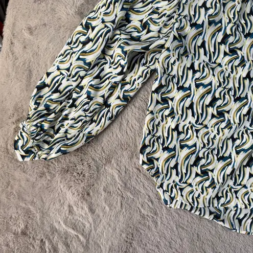 Keywords: Joie blouse, abstract print top, long sleeve blouse, button down shirt, womens blouse, small blouse, bohemian blouse, casual blouse, dressy blouse, teal blouse, gold blouse, black blouse, printed blouse, designer blouse, contemporary blouse
