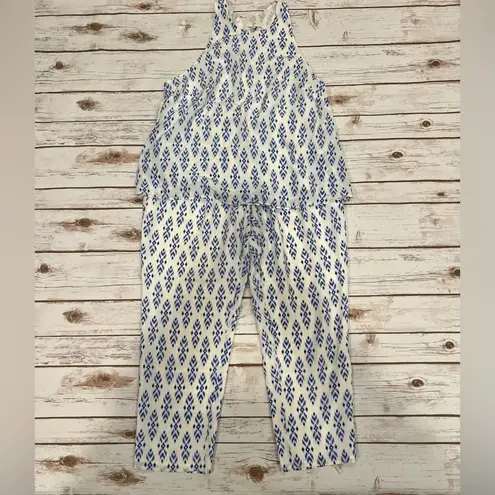 Joie Brighton E Sleeveless Top Dilys Ikat Cropped Pants Silk Set In Baja blue Women’s size M Pan... Show more