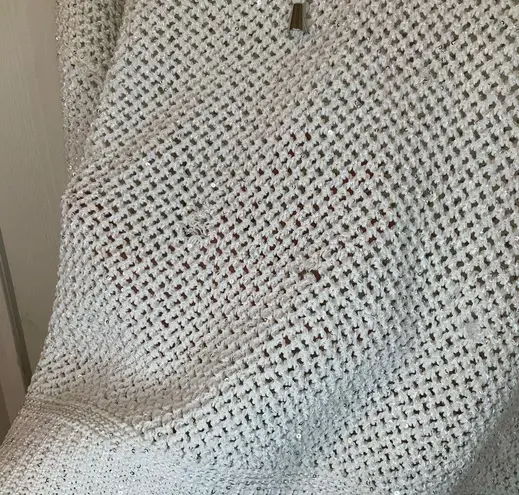 Elegant white knit sweater with a stylish lace-up neck. Ideal for layering. Two small holes pictured... Show more