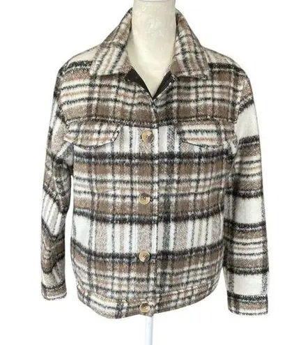 Women's Joie brown and white collared long sleeve button down casual coat shacket, size XS. This ha... Show more