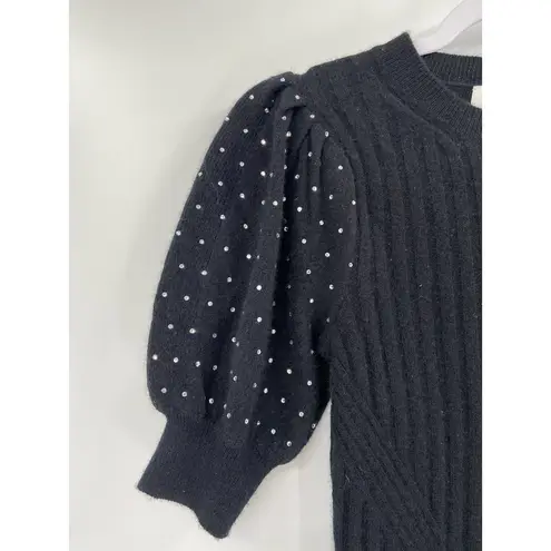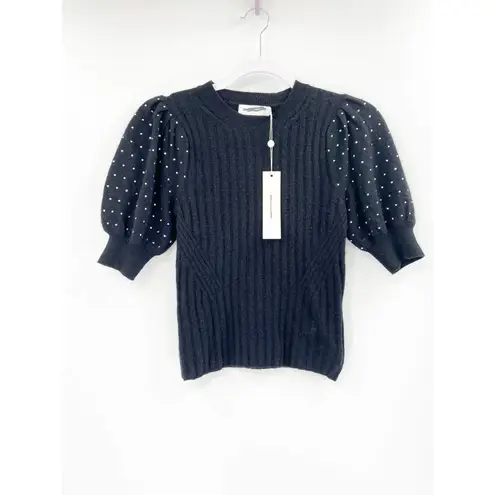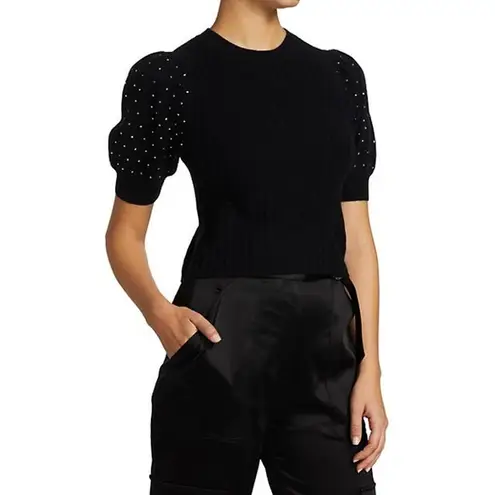 This cashmere blend sweater from Jonathan Simkhai flaunts feminine puff sleeves with embellished detailing and a fitted silhouette. Size: XS Color: Black Crewneck Short puff sleeves Knit Crystal rhinestone embellishment Pullover Wool/cashmere Dry clean NWT - new with tags