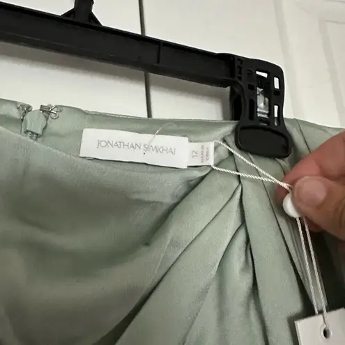 Jonathan Simkhai Mae Mini Classic Draped Ruched Satin Pleated Sash Lichen 12 NWT Green - $150 New With Tags - From Samantha