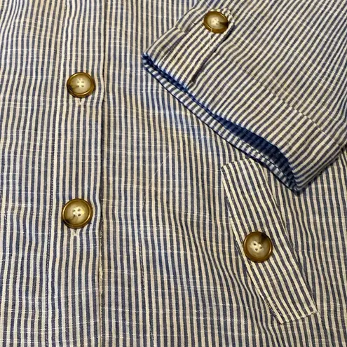 Jones New York Linen Cotton Blend Large Button Hooded Blue Wht Stripe Jacket 2X - $46 - From Lysander