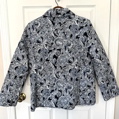Jones New York Signature navy blue quilted polyester button up lightweight jacket. Full button up fr... Show more