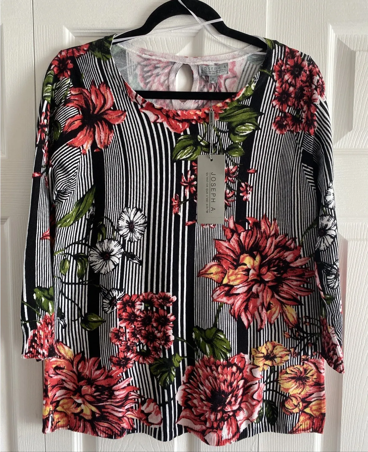Joseph A Womens‎ Medium Striped Floral 3/4 Sleeve Pullover Top NEW - $28 New With Tags - From Arielle