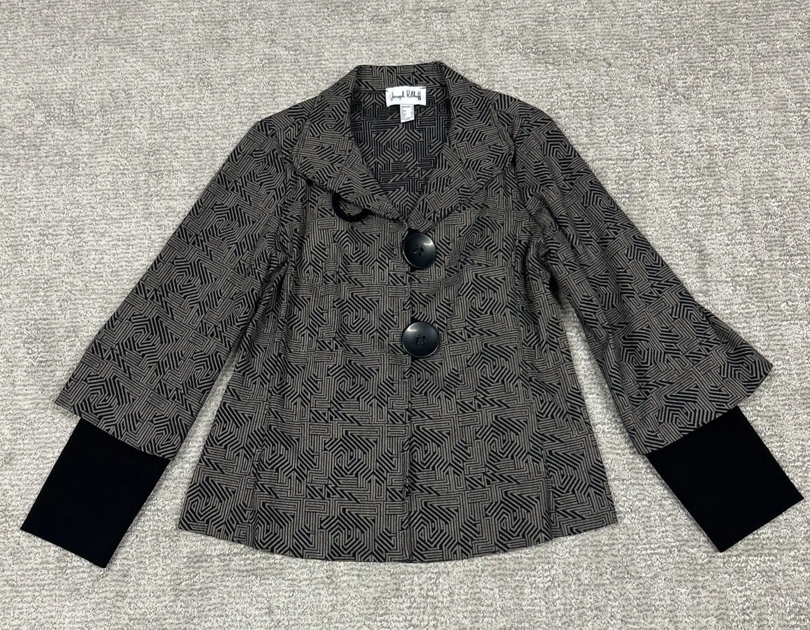 Joseph Ribkoff Jacket Womens 8 Black Gold Patterned Blazer Large Buttons Stretch - $40 - From kelli