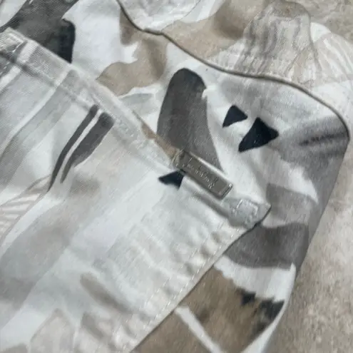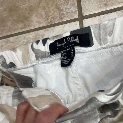 No ordinary denim. This Joseph Ribkoff pant boasts a classic, flattering cut. Its marvelous brushstroke-inspired print elevates your ensemble with style, while adding serious texture to your look. Back pockets add convenience for storing items like your smartphone or change. See all approx measurements Bin 1 Eye-catching trousers with an abstract design. These high-rise jeans from Joseph Ribkoff feature a unique and artistic pattern in neutral tones, making them a versatile addition to your wardrobe. The design is modern and stylish, perfect for adding a touch of flair to any outfit. Other features include a classic five-pocket style and a comfortable fit. These pants would be ideal for a casual brunch with friends, a day of shopping, or even a creative office environment.
