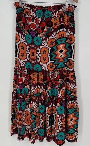 Josie‎ Natori Tiered Maxi Skirt Womens XS Multicolor Aztec Floral Lined Smocked - $39 - From Ines
