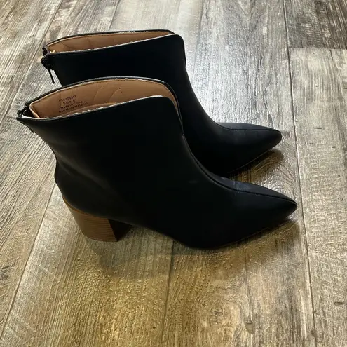 Chic black ankle booties with a sleek design. Features a sturdy block heel. Perfect for versatile styling. If you have an issues or concerns with your purchase please reach out and let me know. I’ll do whatever I can to make it right. Customer satisfaction is at the forefront of my small business and I want you to love your purchase. By purchasing you are supporting a small business and buying second hand is a great way to reduce waste and take care of our environment. All items are washed and put into cellophane bags to ensure cleanliness. Please reach out with any questions!