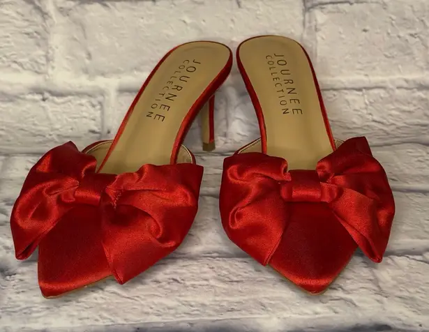 Journee Collection Red Satin Heels with Bow Size 6 - $20 New With Tags - From Loretta