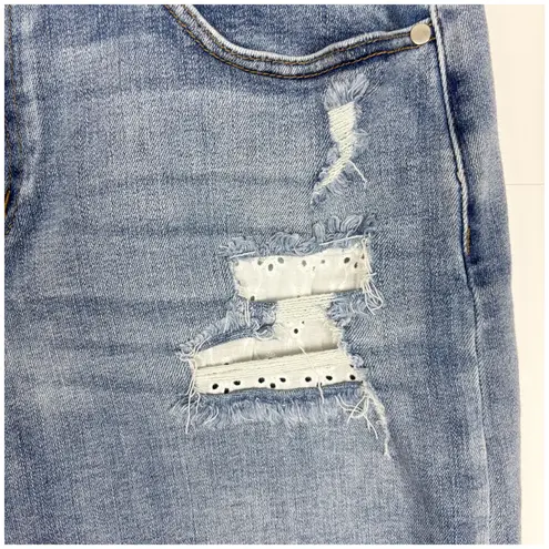 Judy Blue Eyelet Patch Mid-Rise Distressed Shorts Light Wash Size 2XL - $30 - From Candice