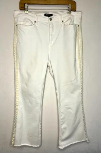 Waist 31 inches Inseam: 24 inches Condition: Excellent Y2K style white jeans with a stylish silver... Show more