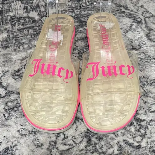 Juicy Couture Clear Slip On Slides Pink Logo Small wedge heel Size 8 Heel Height - 2" Great conditi... Show more