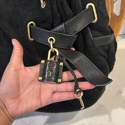 Juicy Couture iconic padlock day shoulder tote bag black terry cloth Y2K It Girl on trend Paris Hil... Show more