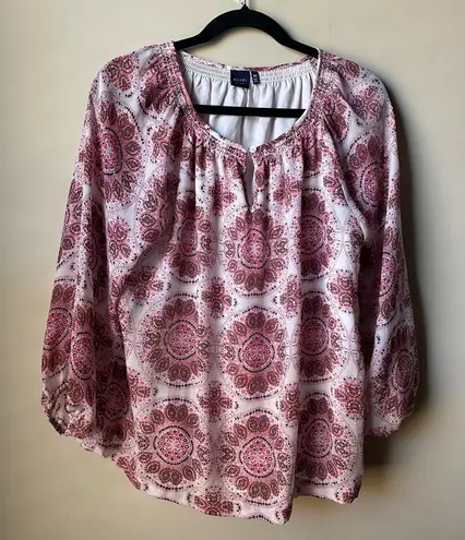 Kaari Blue Womens Size Medium White Pink Pattern Flowy Blouse Shirt - $24 - From Kathryn