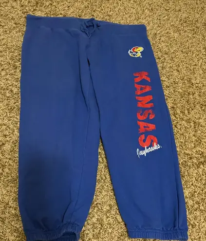 Kansas Jayhawks Cropped Sweatpants from Colosseum Royal Blue with Red Graphics Joggers (Gathered H... Show more
