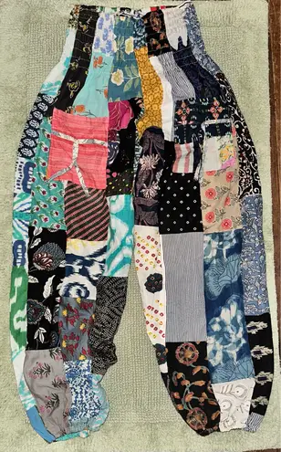 Kantha Joggers 100% Cotton One Size Measurements Waist 11 inch flat stretch 22 Rise 13 inch Inseam 27 inch Perfect like new condition other than One flaw bought that way, shown in last photo stitches unraveled on just the pocked area does not effect the pants or wearing them can be stitched Sold as is no refunds returns or cancellations Multiple - $98 - From Shaquelia