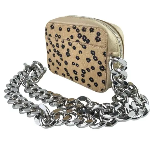 Kara Brown Calf Hair XL Silver Chain Daisy Floral Purse Crossbody Camera Bag Tan - $195 - From Brie