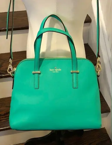 KATE SPADE Two Handle Mint Green Leather Satchel Crossbody Color: Mint Green With Gold Hardware Inte... Show more