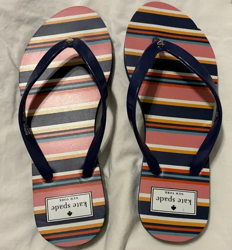 kate spade colorful striped flip flops size 6/7 never been worn. blue pink & yellow stripes. beac... Show more