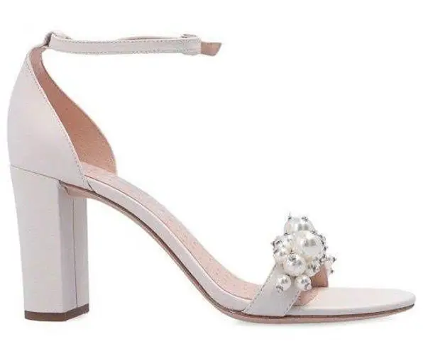 NIB Kate Spade Rosa Pearly Stud Ankle-strap Block Heels Ivory Parchment Size 6.5 Faux-pearl-embelli... Show more