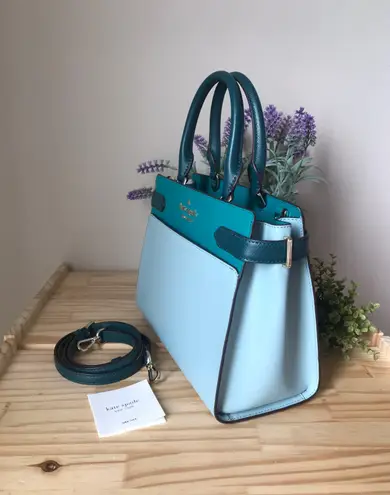 100% Authentic Kate Spade Staci Colorblock Medium Satchel Frosted Spearmint multi and silver hardw... Show more