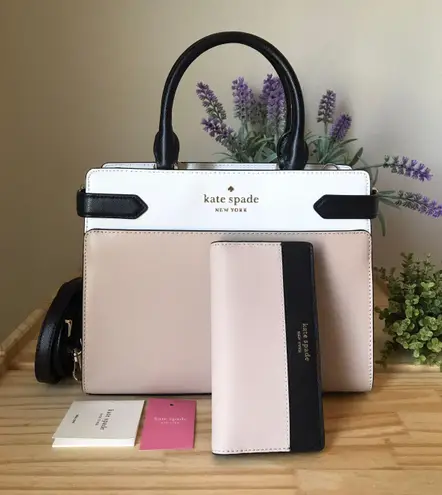 100% Authentic Kate Spade Staci Colorblock Medium Satchel Comes with a matching wallet Warm beige... Show more