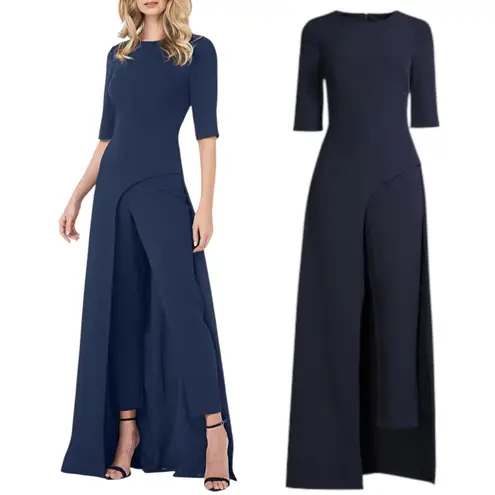 NEW Kay Unger Davina Stretch Walk Thru Jumpsuit Midnight Blue Brand: Kay Unger Size: 4 Condition: New with tag Material: 88% Polyester, 12% Spandex Detail: Midnight blue color Elbow sleeve Crewneck Back zipper Stretch crepe fabric Asymmetrical skirt overlay Fitted Bodice Jumpsuit Silhouette Cropped Pants Full length Lined MSRP $308 Measurement: Pit to Pit: 17" Waist: 14" Hip: 17.25" Sleeve Length: 13" Inseam: 24.25" Garment Length: 58.5" Style tags: Kay Unger, Davina Walk-Thru Jumpsuit, Stretch Crepe Jumpsuit, Midnight Blue Jumpsuit, One‑Piece Eveningwear, Cropped Pant Jumpsuit, Jewel Neckline Jumpsuit, Elbow Sleeve Jumpsuit, Signature Walk‑Thru Style, Size 4 Women, Fitted Bodice, Asymmetrical Skirt, Statement Jumpsuit, Designer Jumpsuit, Modern Cocktail Wear, Wedding Guest Outfit, Cruise/Formal Event Wear, Quiet Luxury, Old Money Style, Dressy Jumpsuit, Gala Jumpsuit, Prom Alternative, Bridesmaid Option, Mother of the Bride, Fashion-Forward Sty