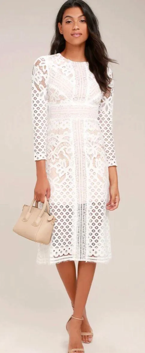 KEEPSAKE Bridges Ivory Lace Long Sleeve Midi Dress. Size L NEW WITH TAGS REVOLVE BRAND Measurement... Show more