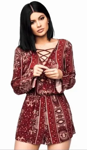 Kendall + Kylie Boho Lace Up Romper. Zip up back. Has pockets. Size S 100% rayon Approximate mea... Show more