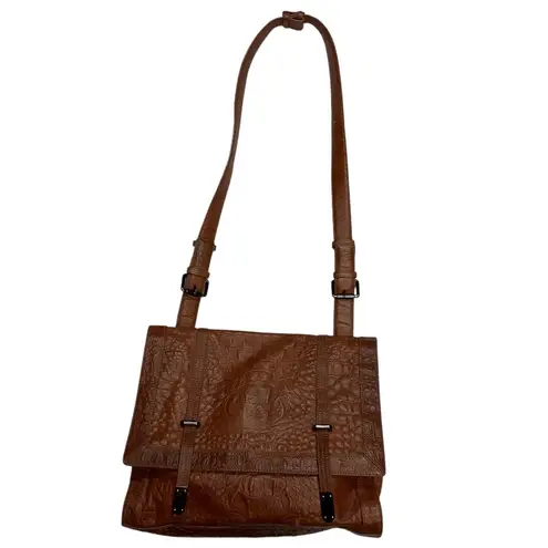 Kenneth Cole New York Brown Croc Leather Messenger Crossbody Bag Cognac Unisex women men Adjustabl... Show more