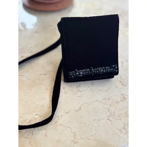A chic black velvet purse adorned with shimmering sequins, designed for stylish outings. Ideal for a... Show more
