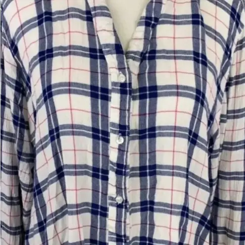 Red and blue plaid, Kenneth Cole, XL long sleeve shirt that rolls up on the sides. The back is longe... Show more