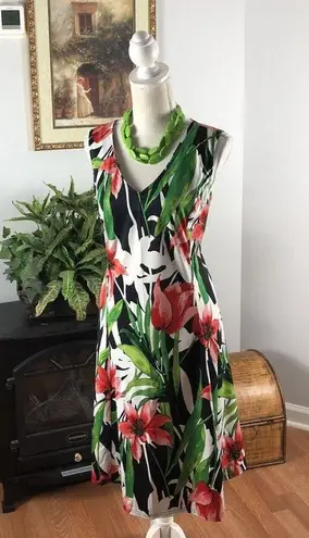 This beautiful Kim Rogers dress is perfect for any occasion, whether you're going to a party or just running errands. The dress is made of a soft and comfortable blend of polyester and spandex, and it features a vibrant floral print that will make you stand out in any crowd. The dress is an A-line style with a knee-length hemline and a collarless design. It has a V-neckline and pullover closure, and it comes in a size L. The dress is machine washable and easy to care for, making it a great choice for busy women. This dress is perfect for summer, fall, or spring, and it's available in multicolor.