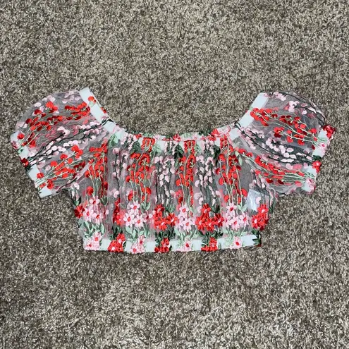 Kimchi blue gorgeous embroidered mesh top Very cropped Off the shoulder design Perfect conditi... Show more