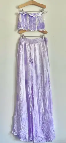 Kiwi + Peach Size Small Matching Set Flowy loose and stretchy material ! Very comfy I’m can sometimes fit into a small (Not often) but this one fits and looks great ! The top is tight but comfortable and no bra is needed. The waist band is the same material as the top ! The pants are tighter on the bum and looser as it goes down your leg Both pants and shirt is size small