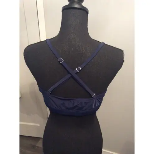 Kona Sol Large L Navy Blue Print Swim Top Criss Cross Back - $10 - From angie