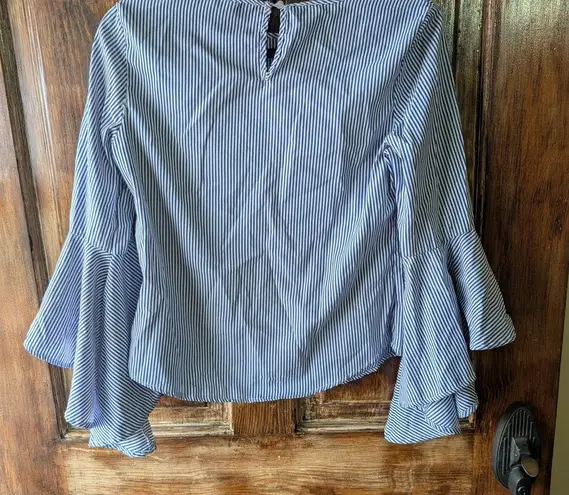 Blue Striped Women's Top with Floral Embroidery - $8 - From Holly