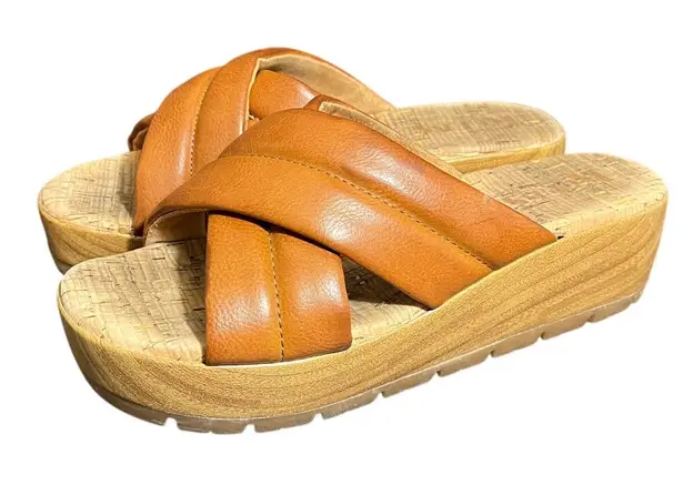 Korks Faithe Brown Platform Wedge Slides Sandals Boho Crossover Womens 7 - $39 - From Sophie