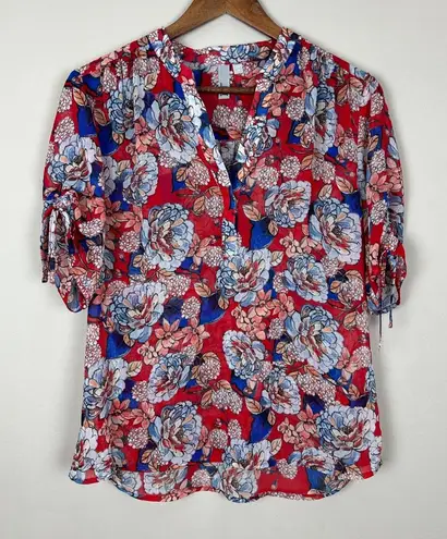 Kut from the Kloth Blouse Top Womens Medium Red Floral Sheer Chiffon V-Neck Tie M Very good conditi... Show more