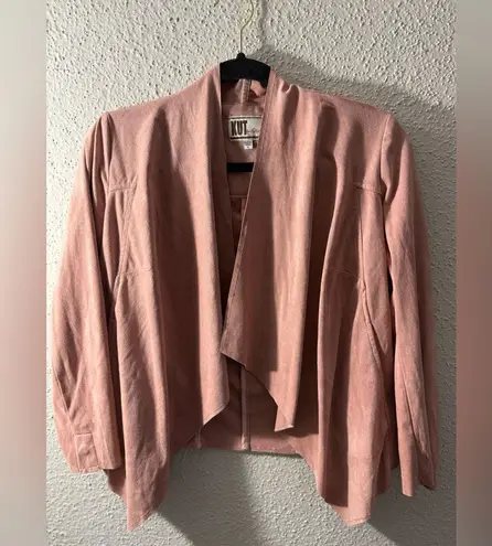 Chic drape front blazer in a soft blush tone. Perfect for layering and versatile styling.