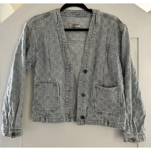 KUT From The Kloth Coco Crop Textured Light Wash Denim Jean Jacket Sz S Pit to pit 19 Length 21
