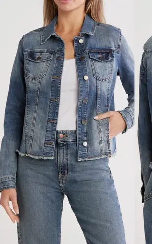 Size large. Kut From The Kloth Jill Raw Hem Denim Jean Jacket In excellent condition. NOTE* there... Show more