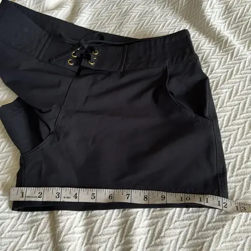Size small Stay sporty with La Blanca's drawstring boardshorts. Pair them with a cropped bikini top and hit the volleyball court! Unlined Pull-on styling; lace-up drawstring at front Off-seam pockets at hips Sits at hips Imported