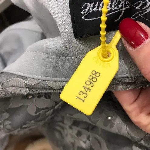 La Femme Platinum Portrait Neckline Lace Embellished Trumpet Gown in Size 6 Style 27982 NEW WITH TA... Show more