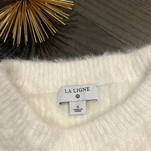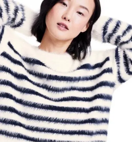 Made from a soft nylon/cotton blend eyelash knit fabric, this crewneck sweater is designed in a cream hue with contrasting navy stripes. Ribbed cuffs and a below-waist length finish off the look with cozy style. LIKE NEW condition 22” pit to pit 19” length Using the stripe as a muse, the three founders behind La Ligne create timeless pieces that can keep up with life’s every moment. In this limited-edition Fall Designer Collection for Target, the stripe is used as a canvas that can be minimalist, maximalist, bold or quiet, a testament to this versatile style staple.