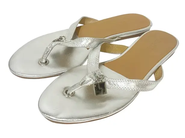 L.A.M.B. Gwen Stefani Flat Thong Sandals Metallic Silver Leather Size 8.5 Charm - $30 - From Nacole