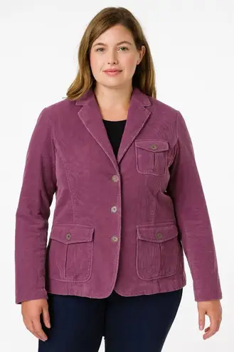 Lands’ End corduroy blazer, purple corduroy jacket, women’s size 12 blazer, plum purple coat, fall jacket, business casual blazer, corduroy outerwear, preppy style, retro corduroy blazer